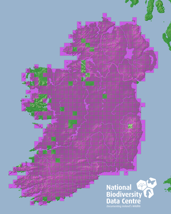 Established - Widespread & Common, possibly more common in eastern and south western parts of the country (Reid et al., 2007). No population estimate exists for Ireland but it is thought to be stable, after accounting for natural fluctuations (Marnell et al., 2009).