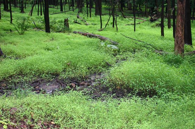 The characteristics of early and fast growth, early maturation, plentiful seed production and tolerance of a wide range of conditions are common to many invasive species (EPPO, 2015). Microstegium vimineum possesses all these features. Rapidly forms dense monocultural stands, thus reducing biodiversity by crowding out native species including tree seedlings. Increases soil nitrification enabling the plant to maintain the monocultures (Lee et al., 2012). Post seed set the dry litter of M. vimineum is very slow to breakdown, which can inhibit native spp. germination and growth (EPPO, 2015). The dry litter also increases the fire risk as well as fire intensity (Flory et al., 2012). Fire promotes the establishment of M. vimineum producing a huge increase in vegetation in the season following a fire (Flory et al., 2012). Favours damp, shaded, disturbed sites but tolerates a wide range of soil moisture (EPPO, 2015), pH and light conditions, from full sun to deep shade (EPPO, 2015). However, dry sandy areas may be less vulnerable to invasion (EPPO, 2015). Increases the rate of carbon cycling thus reducing soil carbon content and reducing soil fertility (Strickland et al., 2010).