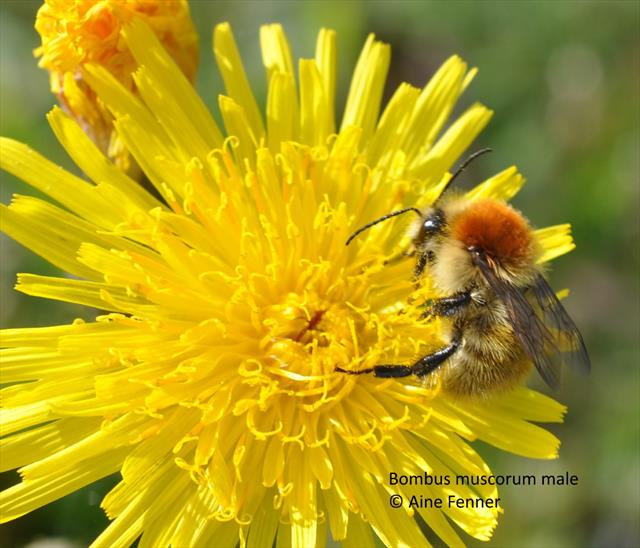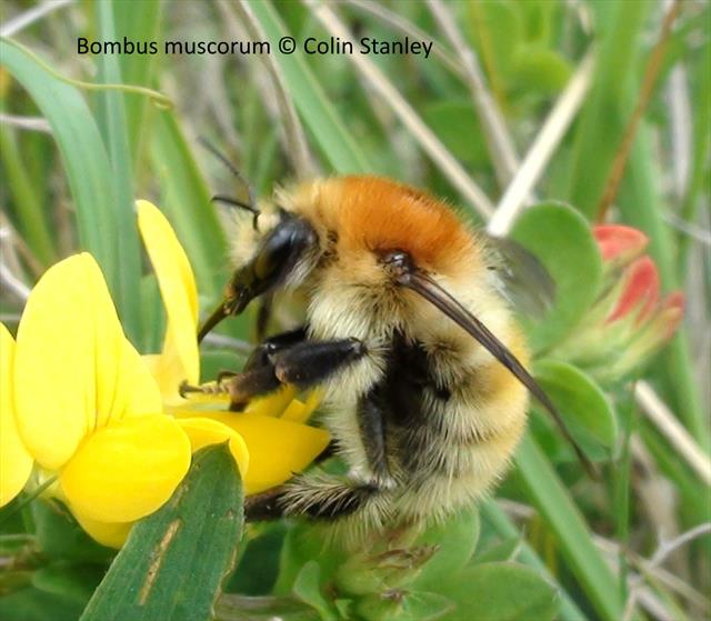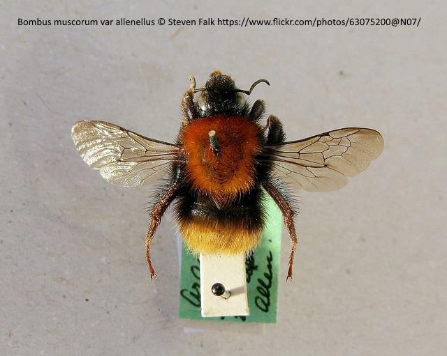 - A unique form occurs on the Aran Islands (Bombus muscorum var. allenellus) that has black hairs on the sides of the thorax