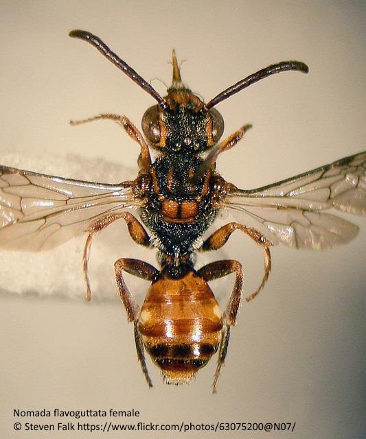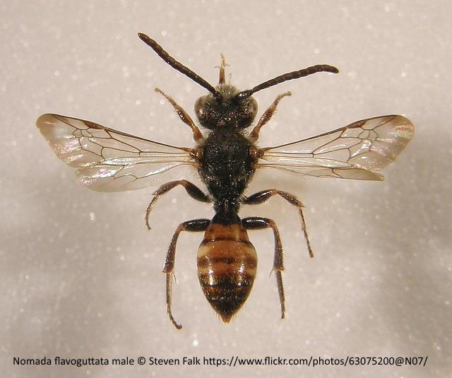 Cleptoparasite. Breeds in nests of Andrena minutula, A. subopaca, A. semilaevis