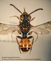 - Abdomen is predominantly red and black striped, but can have patches of yellow at the sides