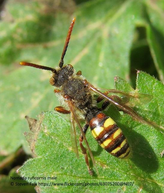Cleptoparasite. Breeds in nests of Andrena haemorrhoa