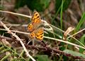 - Numerous orange patches on upperside of wings outlined by broad 'lines' of brown