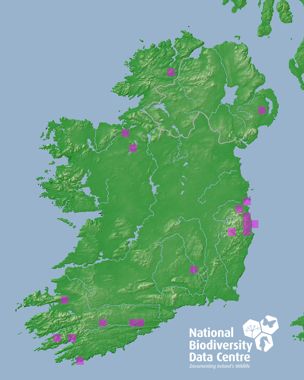 Added to the Irish list by Speight et al (1975). The Irish records for this species are scattered round the island at low altitude and usually not far from the coast - though none are from coastal sites. The species is not frequent, but neither can it be regarded as under threat here.